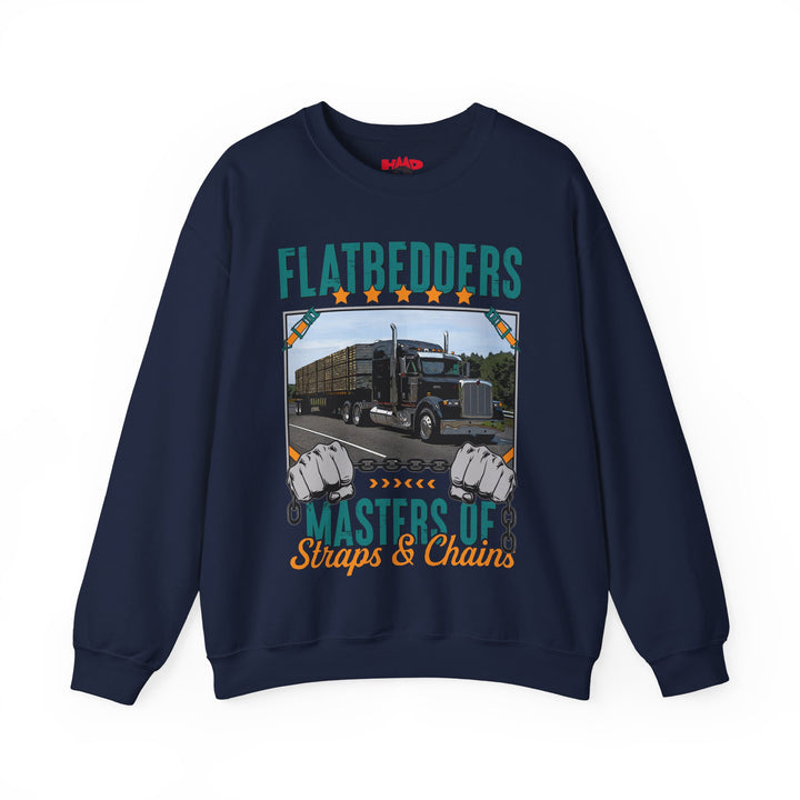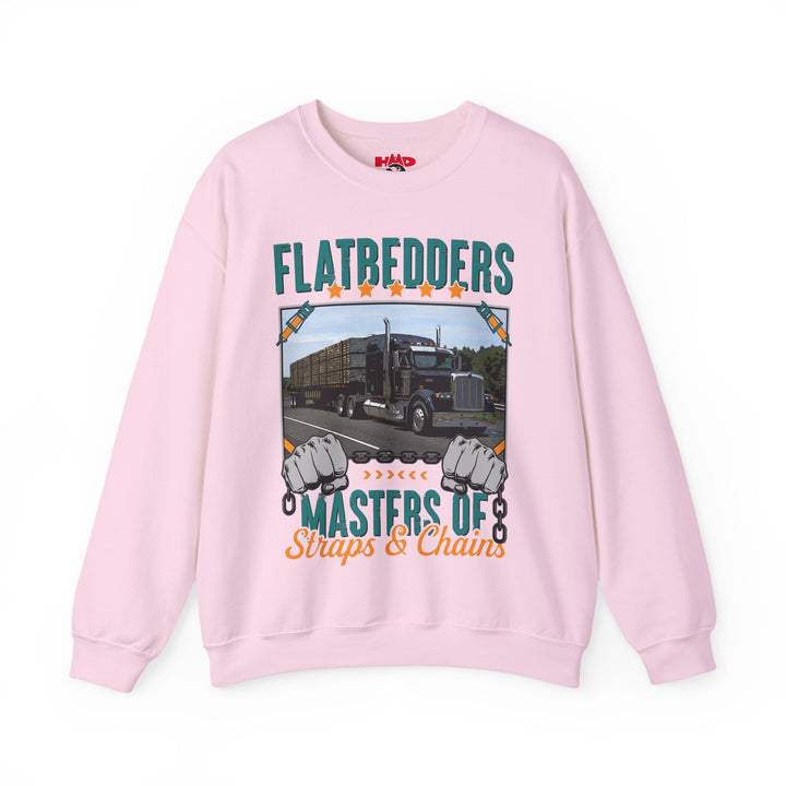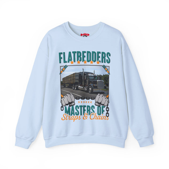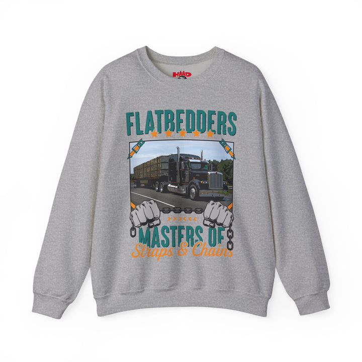 Flatbed Crewneck Sweatshirt — “Masters of Straps & Chains”