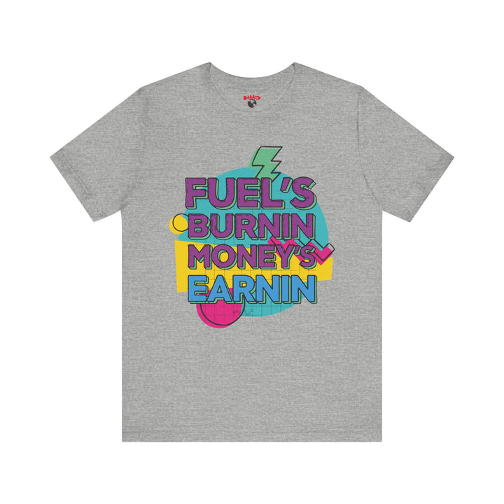Crank the gears and cash the miles — this bold tee screams classic trucker hustle. Featuring the slogan “Fuel’s Burnin’, Money’s Earnin’” in retro style, it’s a must-have for road warriors...