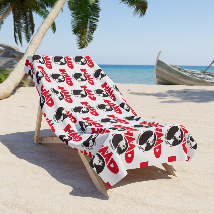 Make a splash with this beach towel covered in the iconic HMD Trucking logo pattern. Designed for beach days, poolside hangs, or sunny vacations, this towel delivers bold personality and practical function. Crafted from a soft polyester blend with a cotton loop backing, it’s quick to dry and keeps its vibrant print no matter how many dips you take. Whether you're laying out under the sun or drying off after a swim, this towel is a summer must-have for truckers and travel lovers alike.
